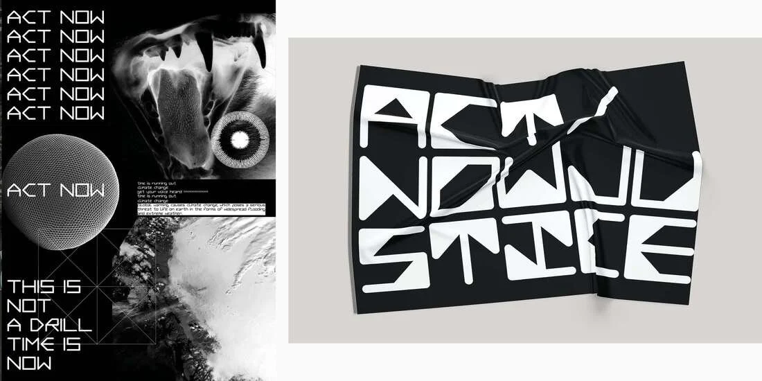 ​The Sounds-of-Protest typeface gives the climate change movement a voice, and articulates their beliefs through symbolic typography. It tackles the issue of climate crisis by creating a recognizable typeface, leading to a graphic identity accessible to everybody. Sounds-of-Protest is an emergency code that embodies a message and unites, intrigues and informs the audience. There are two fonts available, Regular and Fill, both based on the concepts of intensity, sound and cymatics. It is designed for protesters, activists, people who contribute, but also for people that are uninformed. The goal is to raise awareness, communicate and get everybody together for this cause. It is a call to action!